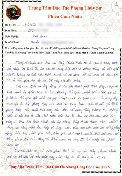 Cảm Nhận Về Khóa Học Phong Thủy Của Học Viên Hoàng Thị... , Nghề Nghiệp Kinh doanh