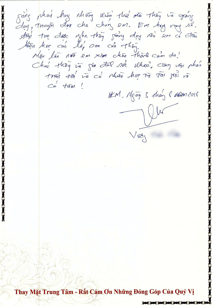 Một lần nữa, Em xin chân thành cảm ơn Thầy! Chúc thầy và gia đình sức khỏe, công việc phát triển tốt và có nhiều học trò tài giỏi và có tâm.